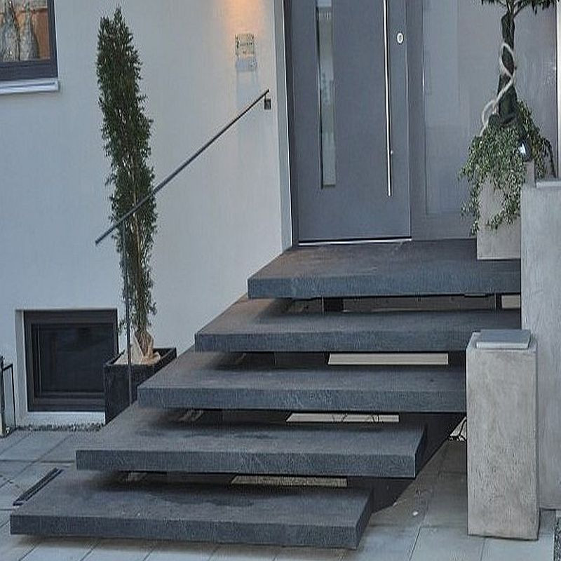 Podestplatte / Podiums platte / Treppen- / Eingangspodest aus Granit Alvaro, Farbe anthrazit - dunkelgrau - blaugrau. Oberflächen und 4 Kanten geflammt, mit Fase, 15 cm stark. Ideale Ergänzung zu Blockstufen aus Granit Alvaro mit 15 cm Höhe. Wunschgrößen auf Anfrage. Ausschnitte sind möglich. Der Granit Alvaro ist sehr feinkörnig und homogen. Leichte, nicht beeinflussbare Einschlüsse und Adern können bei diesem Naturstein vor allem bei größeren Bauteilen auftreten. Granit Alvaro wird hauptsächlich für Natursteinarbeiten im Außenbereich ab einer Stärke von 3 cm verwendet. Granit Alvaro hat bei Anlieferung einen grauen Farbton, die endgültige Farbe erreicht Granit Alvaro ca. 4 - 6 Wochen nach dem Einbau, Granit Alvaro ist säurebeständig, frostbeständig und rostfrei. Dieser Granit wird mit geflammter Oberfläche hergestellt, wodurch die Struktur und die Farbe des Steins am besten zur Geltung kommen. Andere Oberflächenbearbeitungen sind möglich. Granit Alvaro mit polierter Oberfläche wird auch im Innenbereich verwendet. Granit Alvaro ist ein Natursteinprodukt und unterliegt natürlichen Farb- und Kornabweichungen. Dieser Artikel ist zu diesem Preis an keine Mindestbestellmenge gebunden. Zur Anfrage der Lieferkosten klicken sie auf den blauen Button Preisanfrage. Sie bekommen schnellstens ein kostenloses Angebot. Wir beraten Sie gerne auch telefonisch. Rufen Sie uns an +49 7761 93790460, aus der Schweiz +41 32 5132833.