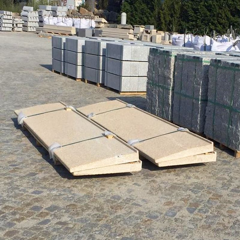 Sichtschutz aus Granit Tiago, Farbe Gelb bis hellgelb. Alle Seiten gesägt und gestrahlt, 10 cm stark, 50 cm breit. Einzellängen bis 350 cm. Andere Größen und Formate sowie Wunschgrößen kurzfristig lieferbar. Rechteckige Ausschnitte oder rundes Guckloch gegen Aufpreis möglich. Tiago Granit ist ein homogener, intensiv gelber, mittel- bis feinkörniger Granit aus Nordportugal. Er zeichnet sich durch ausgezeichnete technische Eigenschaften aus. Mit einer Wasseraufnahme von nur 0,2 % bleibt dieser Stein auch nach Jahren farbecht. Granit Tiago gelb ist frostbeständig, rostfrei und säurebeständig. Granit Tiago gelb bieten wir mit sandgestrahlten Oberflächen an, die gelbe Farbe des Gesteins wird dadurch freundlich hellgelb. Andere Oberflächenbehandlungen sind auf Anfrage möglich. Granit Tiago ist ein Natursteinprodukt und unterliegt sehr geringen Korn- und Farbschwankungen. Der Preis zu diesem Artikel ist gültig ab Werk Portugal bei genannter Mindestbestellmenge. Sollten Sie weniger benötigen, klicken Sie auf den blauen Botton Preisanfrage. Sie bekommen schnellstens ein kostenloses Angebot. Wir beraten Sie gerne auch telefonisch. Rufen Sie uns an +49 7761 93790460, aus der Schweiz +41 32 5132833.